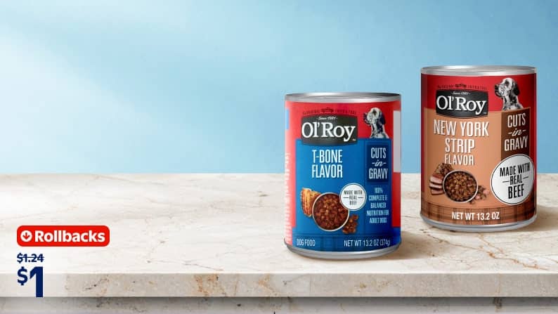 Rollback Ol' Roy T-Bone Flavor Cuts in Gravy Wet Dog Food, 13.2 oz Can $1.06