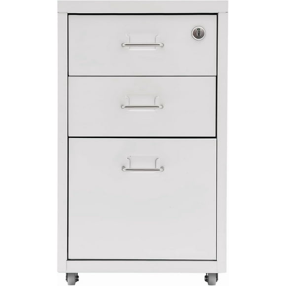 current price $103.303-Drawer Vertical File Cabinet,Metal Mobile File Cabinet with Lock and Curved Handle, Freestanding Filing Cabinet Under Desk,Office Storage Cabinet for Home, Office, Study, Dresser (White)