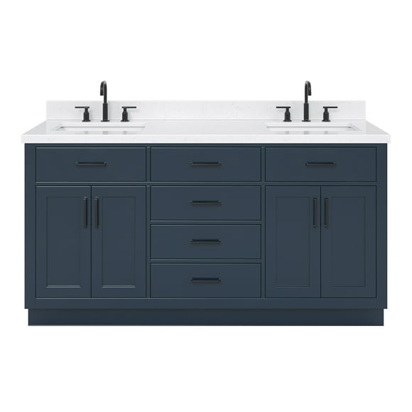 current price $1,989.90Ariel Hamlet 72 In. Double Rectangle Sink Bathroom Vanity With Carrara White Quartz Countertop 1.5 Edge In Midnight Blue