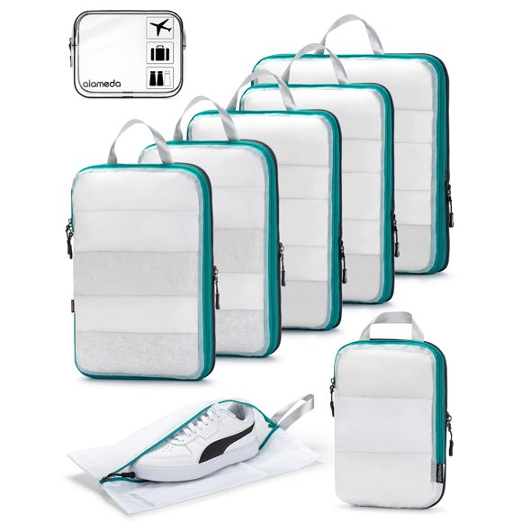 current price $36.90Large Compression Packing Cubes for Travel with See Through Mesh - Alameda 8 Set Packing Cubes for Suitcases Compression Series with Full-Zipper, Expandable Suitcase Organizer Bags Set