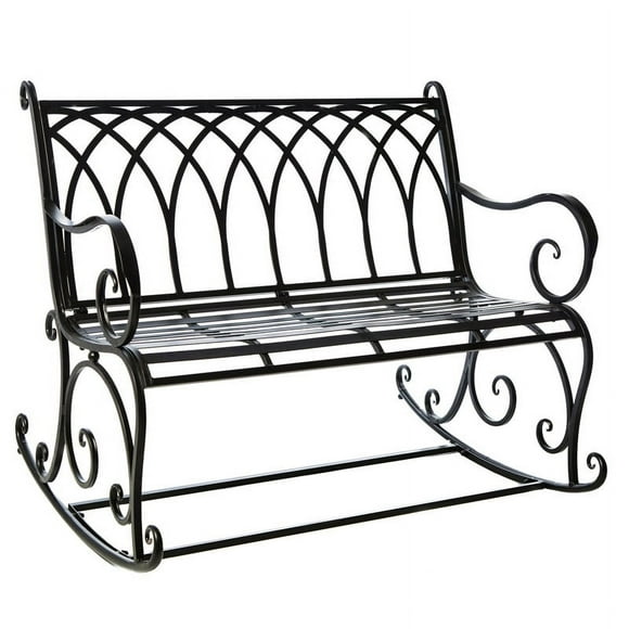 current price $367.00Evergreen Beautiful Springtime Colorful Black Rocking Brushed Metal Garden Bench - 43x33x37 in