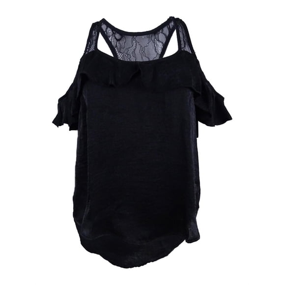 Crave Fame Juniors Ruffled Racerback Cold Shoulder Top Black S $21.73 $1.55/oz