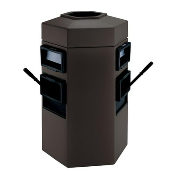 DCI Marketing 732906299 42 gal Waste Container with Dome Lid & Stainless Steel Panels Horizontal, Brown