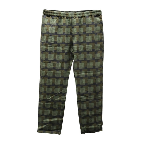 current price $136.00Pre-Owned Dries Van Noten Check Linen Trousers in Green Linen