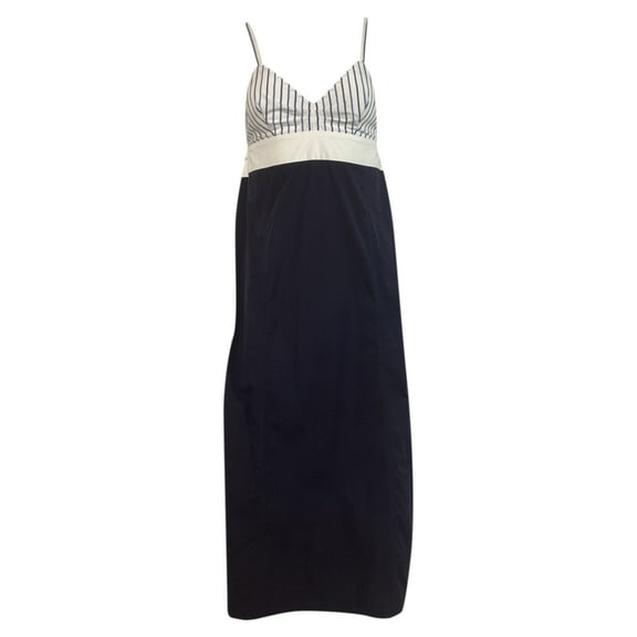 current price $446.00Pre-Owned Dries Van Noten Stiped Bra Top Midi Dress in Navy Blue Cotton