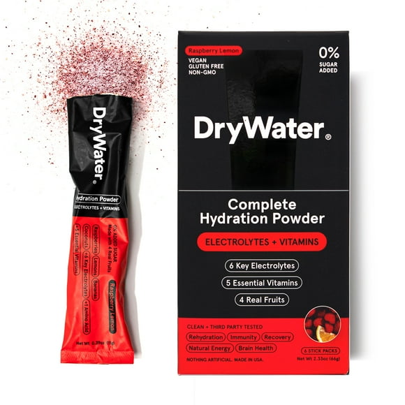 DryWater Hydration Powder (Electrolytes + Vitamins) , Raspberry Lemon, 6 Pack $9.98 $4.28/oz