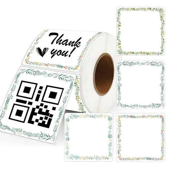 500Pcs Color Square Thermal Labels Self-Adhesive Green Plants Sticker 1.18x2 Inch-4 Design Direct Thermal Printer Label $10.39