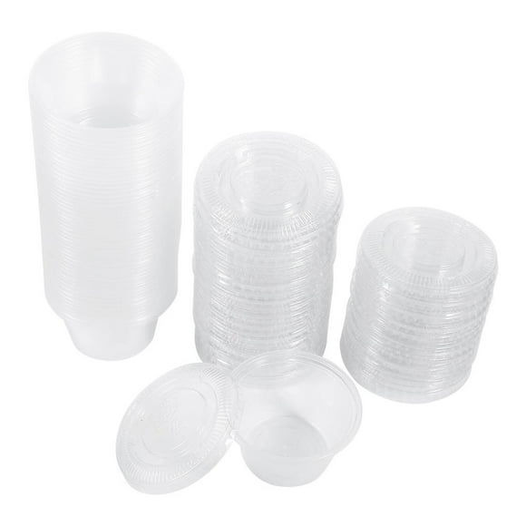 current price $15.6950 Pieces Disposable Plastic Chutney Cups With Lids Food Container Storage Box Leak Proof (2oz)