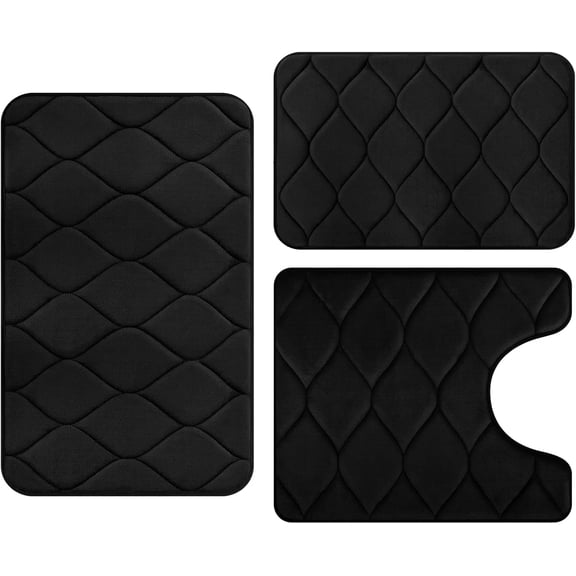 GLQGS Memory Foam Bathroom Rugs - Water Absorbent, Extra Soft Non-Slip Bath Mat, Washable Egg Shape Design Bath Mat Set of 3, Small/Large/Contour, Black $31.95