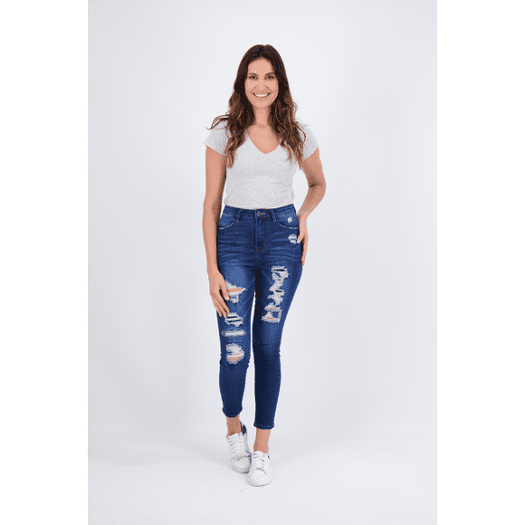 current price $26.95Gogo Jeans Trendy Plus Size High Rise Destructed Ex Boyfriend Jeans Medium Dark 20W