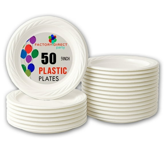 Exquisite 9-Inch White Heavy-Duty Plastic Disposable Dinner Plates (50-Pack) - Durable, Eco-Friendly, Perfect for Parties, Holidays, and Everyday Use $11.99