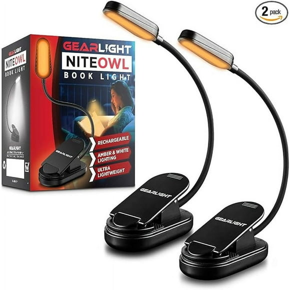 current price $19.49GearLight 2-Pack Rechargeable LED Book Light - Adjustable Clip-On Reading Lamp