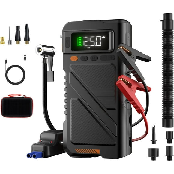 current price $69.99Car Jump Starter 3000A/12V with Air Compressor Car Battery Jump Starter Charger and Jumper Cables for 8.0L Gas/6.0L Diesel Engines Portable Jump Starter for Car