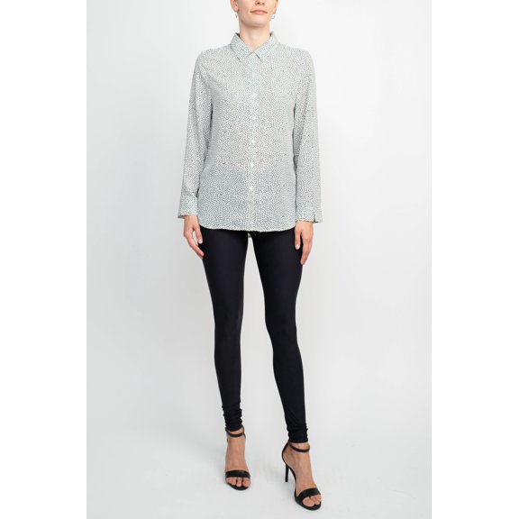 VS Sport Collar Neck Button Detail Long Sleeve Printed Crepe Top-BLACK WHITE / S $44.99