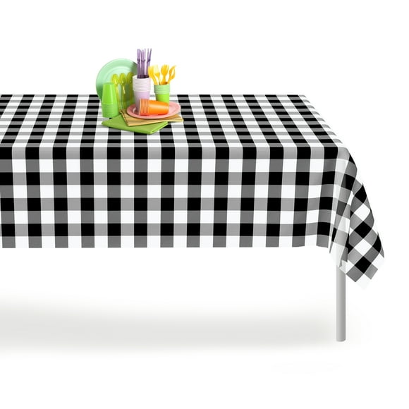 current price $32.99Black Checkered Gingham 12 Pack Premium Disposable Plastic Tablecloth 54 Inch. x 108 Inch. Rectangle Checkered Racing Flag Table Cover By Grandipity
