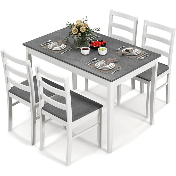 LDAILY 5 Piece Dining Table Set for 4, Space Saving Rectangular Dining Room Table with Rubber Wood Legs, Modern Kitchen Table Chairs Set of 4 for Dining Room, Living Room & Breakfast Nook (Gray) $275.98