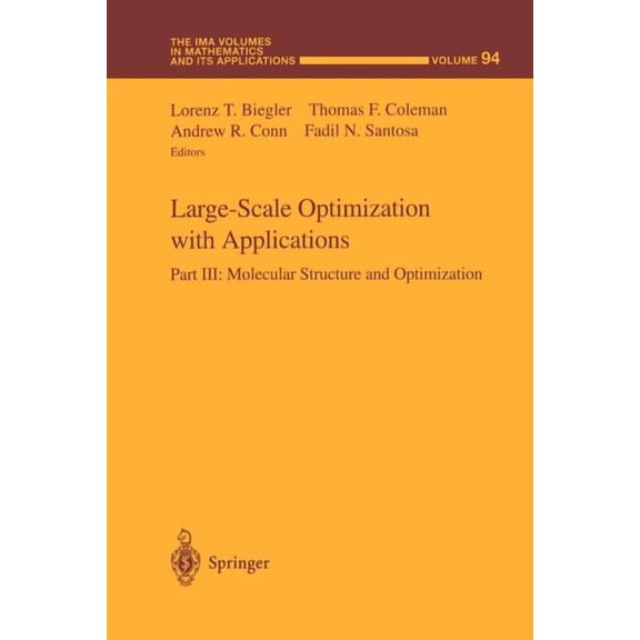 current price $91.36IMA Volumes in Mathematics and Its Appli Large-Scale Optimization with Applications: Part III: Molecular Structure and Optimization, Book 94, (Paperback)
