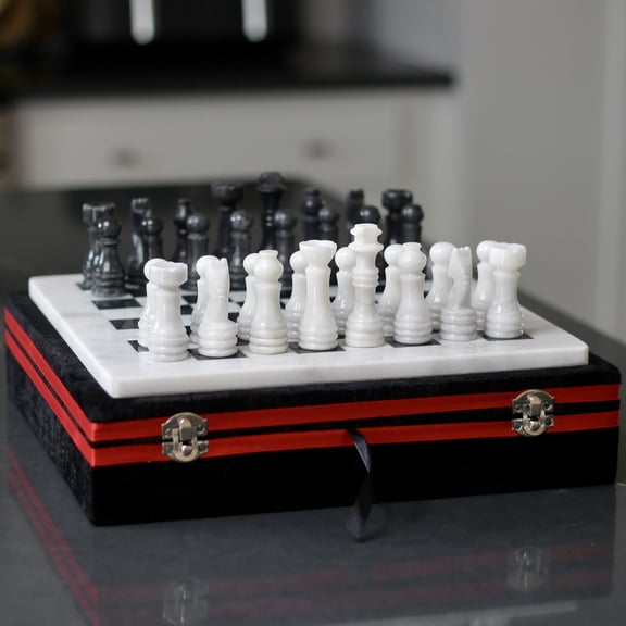 Marble Chess Set with Storage Case - White and Black