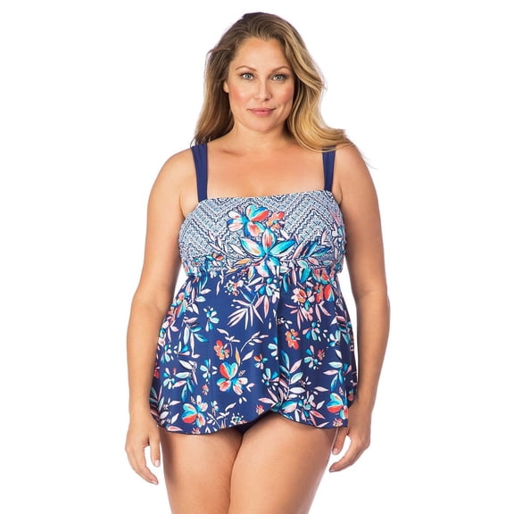 Plus-Size Flyaway Tankini One-piece Swimsuit Tropical Trip - 24W