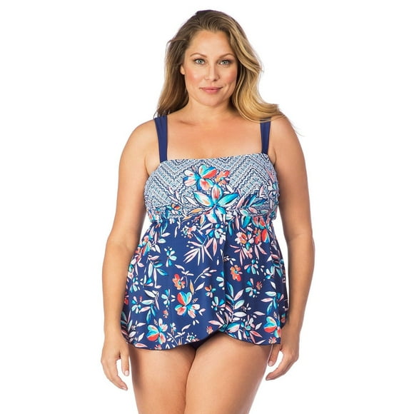 Plus-Size Flyaway Tankini One-piece Swimsuit Tropical Trip - 24W $70.00