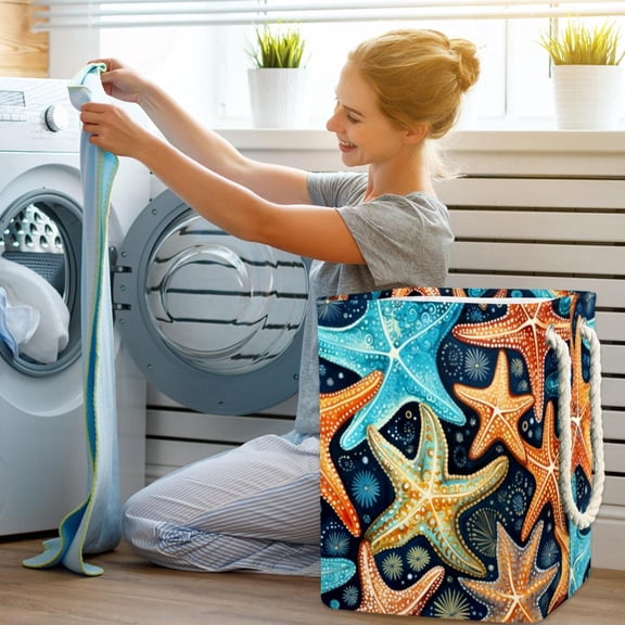 OWNNI Starfish Pattern Foldable Waterproof Baby Hamper Laundry Baskets - 60L Capacity, Support Rods, Toy Storage, Clothes Organizer