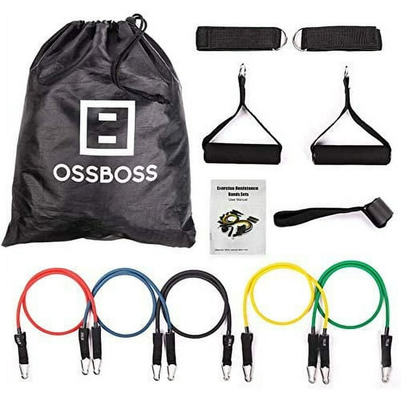 11 PC Premium Resistance Bands with Handle Set for Strength Training, Workout, Yoga, Crossfit, Functional Training - Includes Door Anchor, Handles and Ankle Straps - Stackable Up to 100 lbs $19.88
