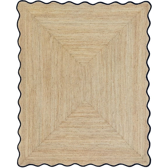 Braided Scalloped Jute Rug, Natural Farmhouse Indoor, Outdoor Mat