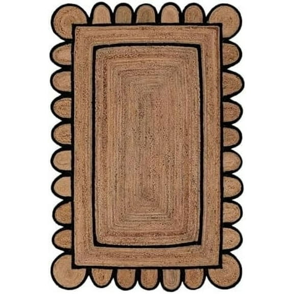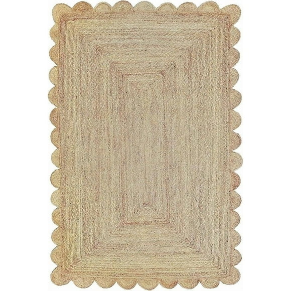 Scalloped Natural Rectangular Jute Rug, Boho Braided Area Rug, Coastal Farmhouse Jute Rug for Kitchen, Patio, Hallway, Entryway,Handcrafted, Eco-Friendly (2 Ft 6 Inch x 8 Ft) $73.00
