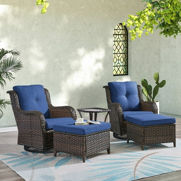 POCASSY 5PCS Patio Furniture Set with Cushioned Outdoor Swivel Rocking Chair, Ottoman and Side Table, All Weather Wicker Outdoor Conversation Set for Pool, Backyard, Garden, Brown/Blue $589.99 Was $649.99