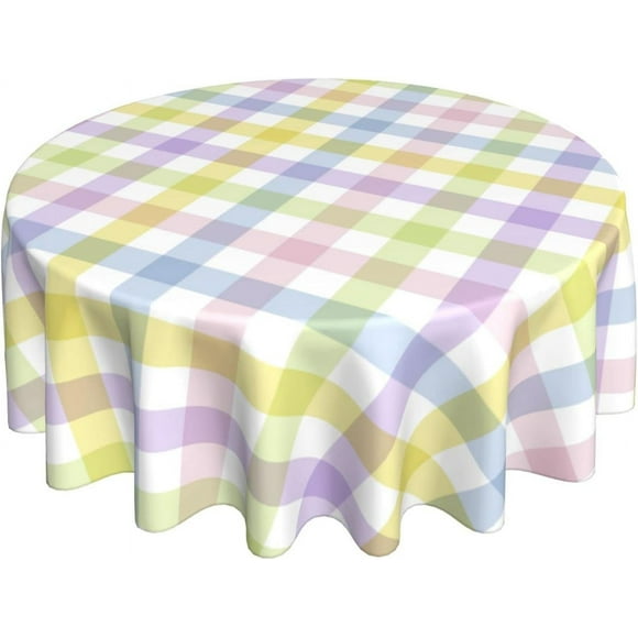 Easter Plaid Round Tablecloth 60 Inch,Spring Coloring Checkered Table Cloth,Wrinkle Stain Waterproof Holiday Table Covers,Rustic Rainbow Small Fabric Farmhouse Tablecloths for Party Picnic