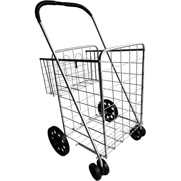 current price $91.74Jumbo Shopping Folding Cart with Extra Small Double Basket and Front Swivel Wheels | 150 LBS Capacity | Color: Blue