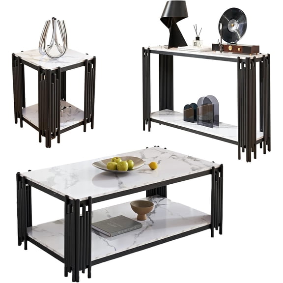 current price $558.94GLZ'HOME Elegant Marble Coffee Table Set of 3 White Faux Marble Coffee Table Console Table End Table Set with Black Metal Frame 3 Piece Living Room Table Set for Apartment Home Office