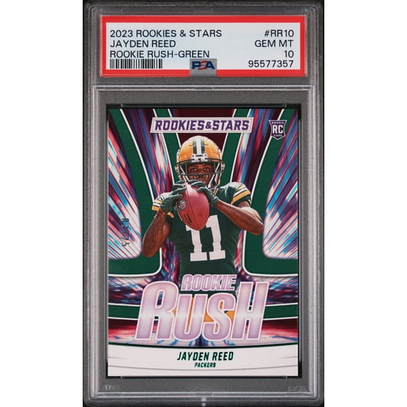 2023 Panini Rookies & Stars Rookie Rush #RR10 Jayden Reed Green PSA 10 $99.99