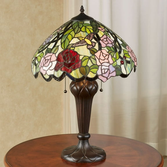 current price $349.00Roses Hummingbird Tiffany Style Stained Glass Table Lamp Multi Pastel One Size