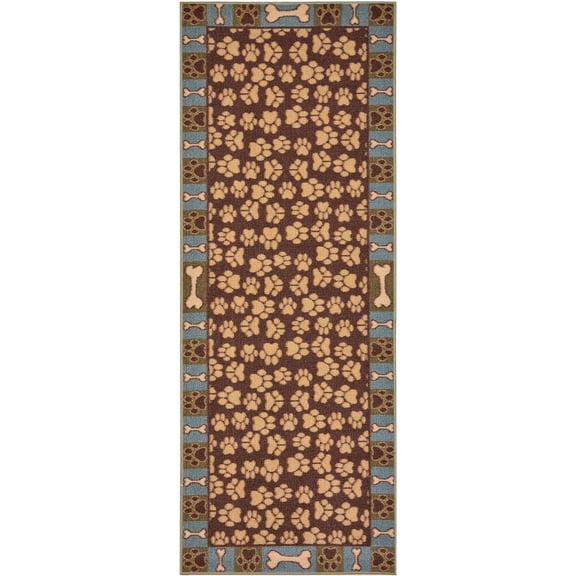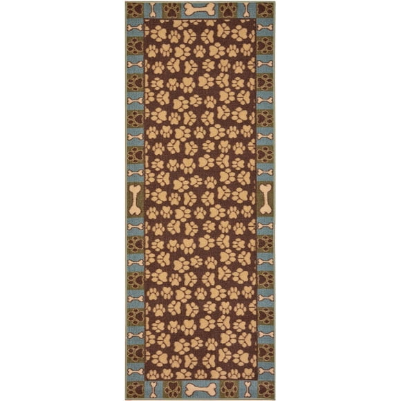 Pet Paw and Bone Design Brown Aqua Blue Rug Runner Printed Slip Resistant Rubber Back Latex 2 x 5 Runner Rug (Brown Teal, 20" x 59") $16.99