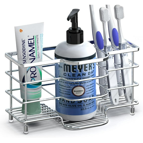 current price $11.00Ventilated Toothbrush Holder for Bathroom, Stainless Steel Tooth Brush Stand for Toothbrush, Toothpaste, Razor, Hand Soap, Vanity Countertop 6 Slots Organizer (Chrome)