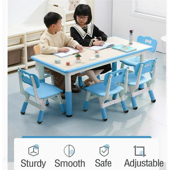 TROPOW Kids Table and Chairs,Height Adjustable Toddler Table and 6 Chair,Multi-Activity Table with Graffiti Desktop Non-Slip Legs for Ages 2-10,Children Activity Table for Daycare,Classroom,Blue $107.87 Was $119.99