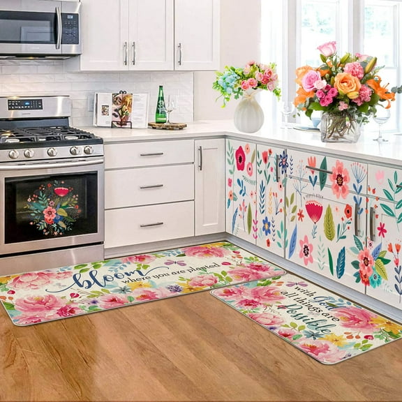 current price $19.59Spring Summer Kitchen Carpet (2 Pieces) Kitchen Carpet Washable Cushion Comfortable Kitchen Carpet Set Kitchen Floor Mat Comfort Standing Mat Machine Washable