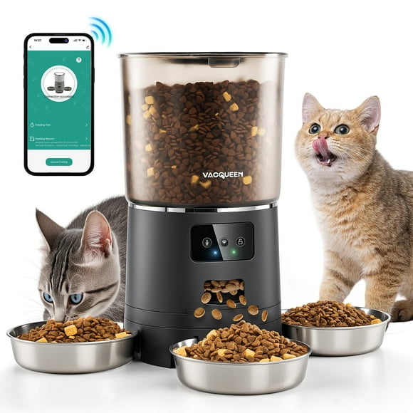 current price $69.99Vacqueen Automatic Pet Feeders with 3 Bowls, Cat Food Dispenser, 6L Capacity, WiFi Remote Feeding