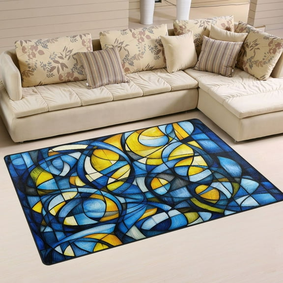 Abstract Blue and Yellow Soft Polyester Area Rug 31''x20'', Non Slip, Memory Foam, Water Absorbent