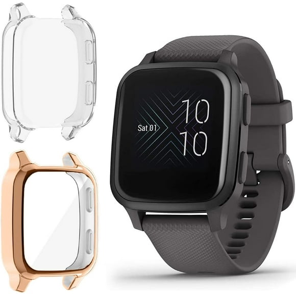 current price $10.89WUWOCJ Screen Protector Case Compatible with Garmin Venu Sq/Venu Sq Music, TPU Rugged Bumper Case Cover All-Around Protective Plated Shell Case (Rose Gold/Clear)