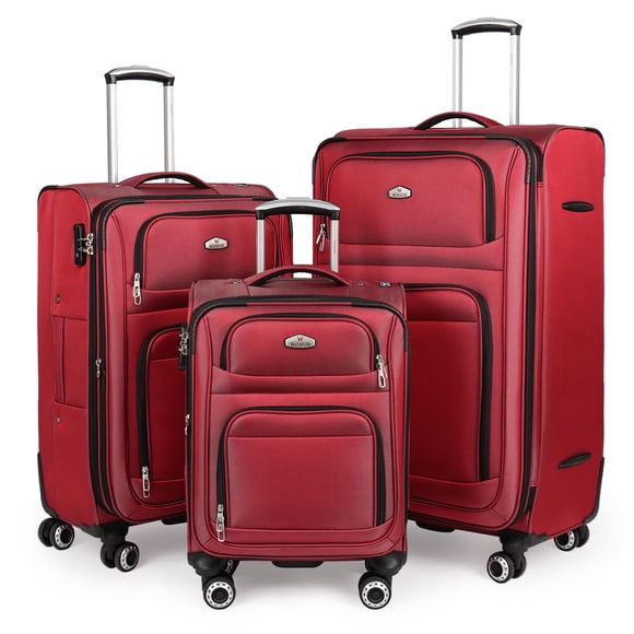 3-Piece Softside Luggage Set Lightweight Soft Shell Expandable Suitcase with Spinner Wheels & TSA Lock,20"/26"/30",Red - WD1622 $189.00