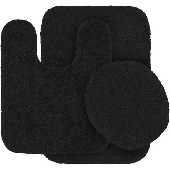 current price $23.99YANG2 ,3-Piece Solid Bathroom Bath Mat Set – Plush Contour Rug with Toilet Lid Cover, Non-Slip Absorbent Bath Rugs for Bathroom Floor, Soft Cozy Mats for Tub/Shower Area, Machine-Washable,BLACK