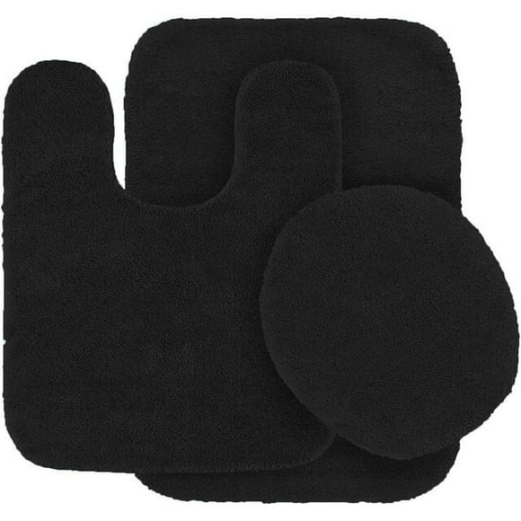 YANG2 ,3-Piece Solid Bathroom Bath Mat Set – Plush Contour Rug with Toilet Lid Cover, Non-Slip Absorbent Bath Rugs for Bathroom Floor, Soft Cozy Mats for Tub/Shower Area, Machine-Washable,BLACK $23.99