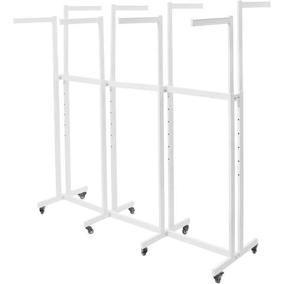 Floor Standing 6 Arms Garment Rack, Heavy Duty Metal Clothing Display Rack With Wheels, 3.9'-5.2' Height Adjustable Mobile Square Tubing Retail Display Racks For Hanging Clothes