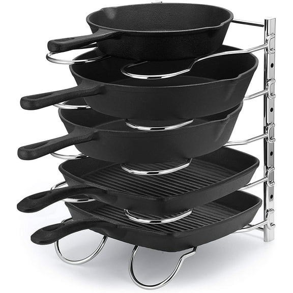 current price $45.71CAXXA Heavy Duty Pan Rack, Pot Lid Rack, Kitchen Cabinet Pantry Cookware Organizer Rack Holder | 5 Adjustable Dividers, Chrome