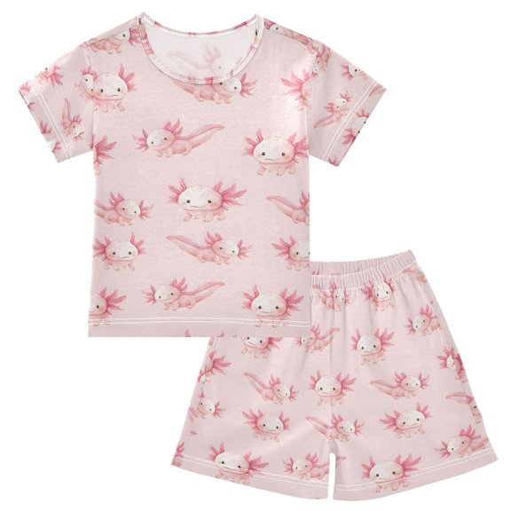current price $26.99Pink Axolotls Illustrat Pattern Summer Pajama Set Soft Cotton Short Sleeve Sleepwear 2PCS Pajama Sets Breathable Lounge Set Size 10Y