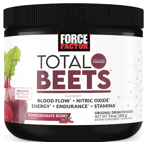 Force Factor Total Beets Pre Workout Powder, Nitric Oxide Booster with Beetroot Powder for Energy, Blood Flow & Pumps, Fruit Punch, 30 Servings