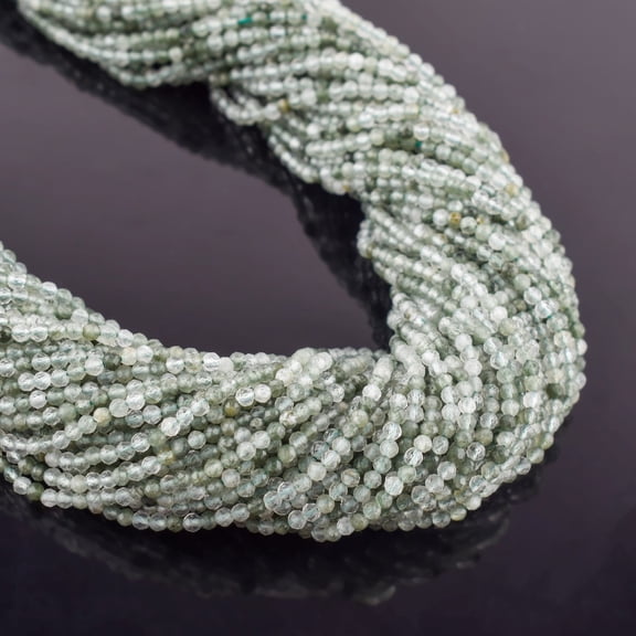 QNAVIC Green Quartz Gemstone Micro Faceted Rounds Beads Strand Drilled Stone Chakra Healing Crystals DIY Jewelry Making Wholesale Bulk Loose Supply Strand 30 Centimeter (1 Strand)