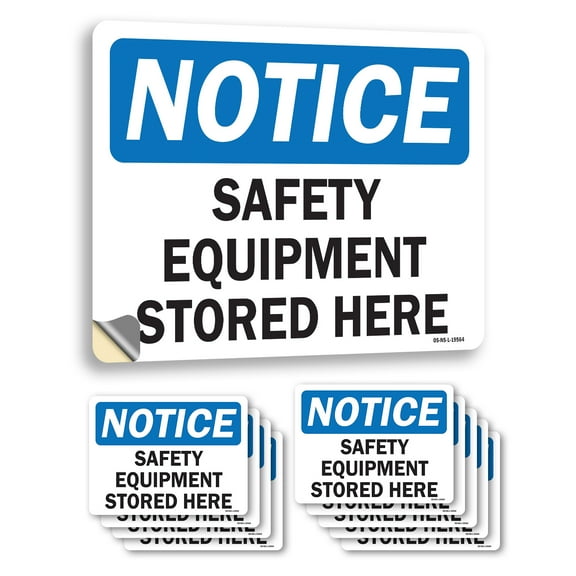 Safety Equipment Stored Here OSHA Notice Vinyl Decal Label 7 Inch x 5 Inch - 10 Pack